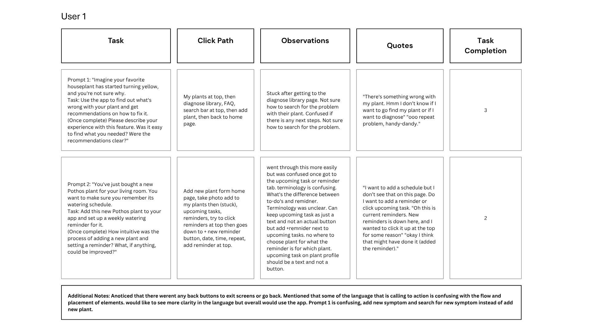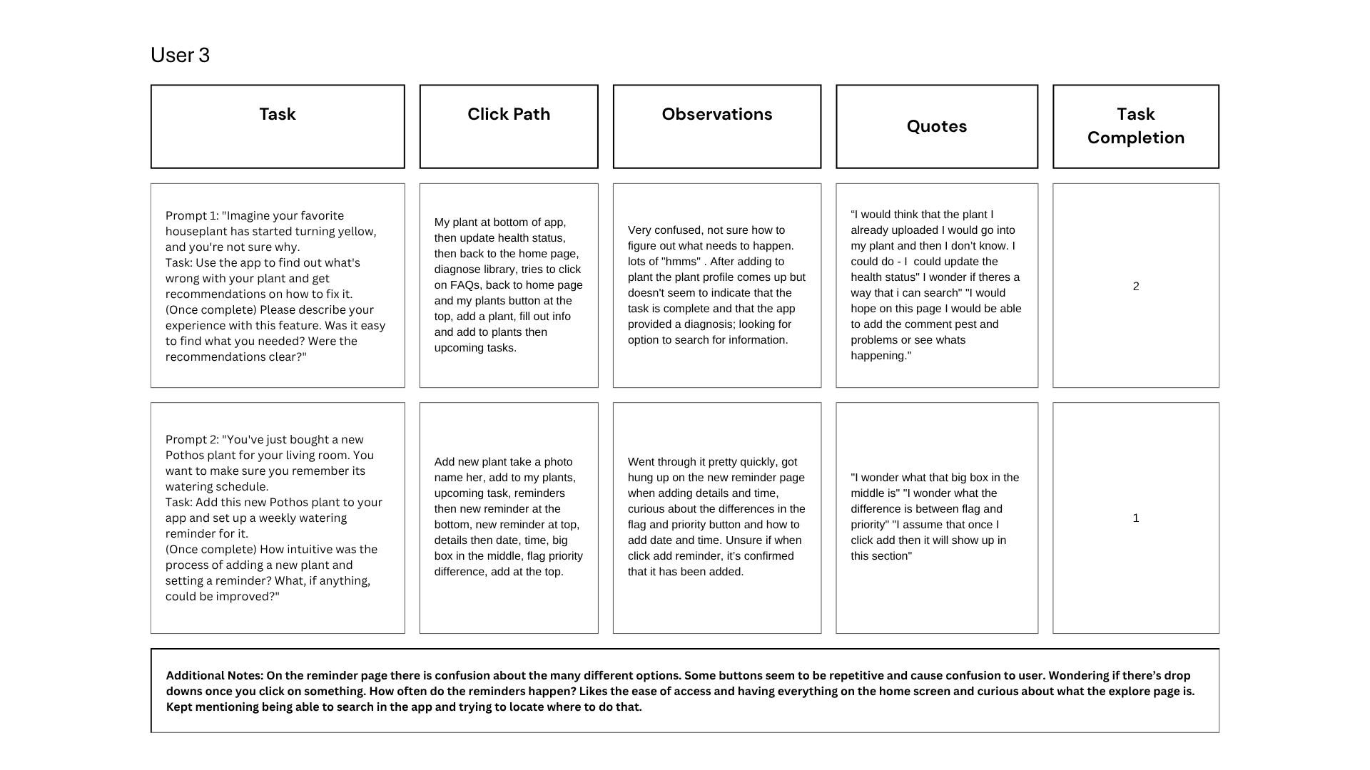 This study sought to determine if the app's design is engaging and intuitive. My primary goals were to evaluate the user's ability to accurately diagnose a plant's health and to effectively utilize the reminder functionality.