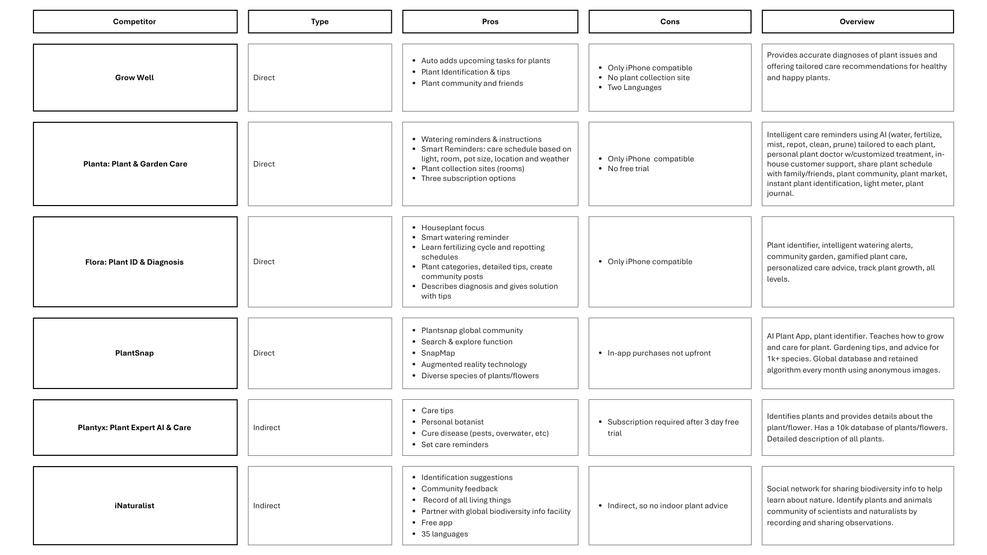 Competitive analysis: A review of existing plant care apps revealed a lack of clear, actionable guidance.