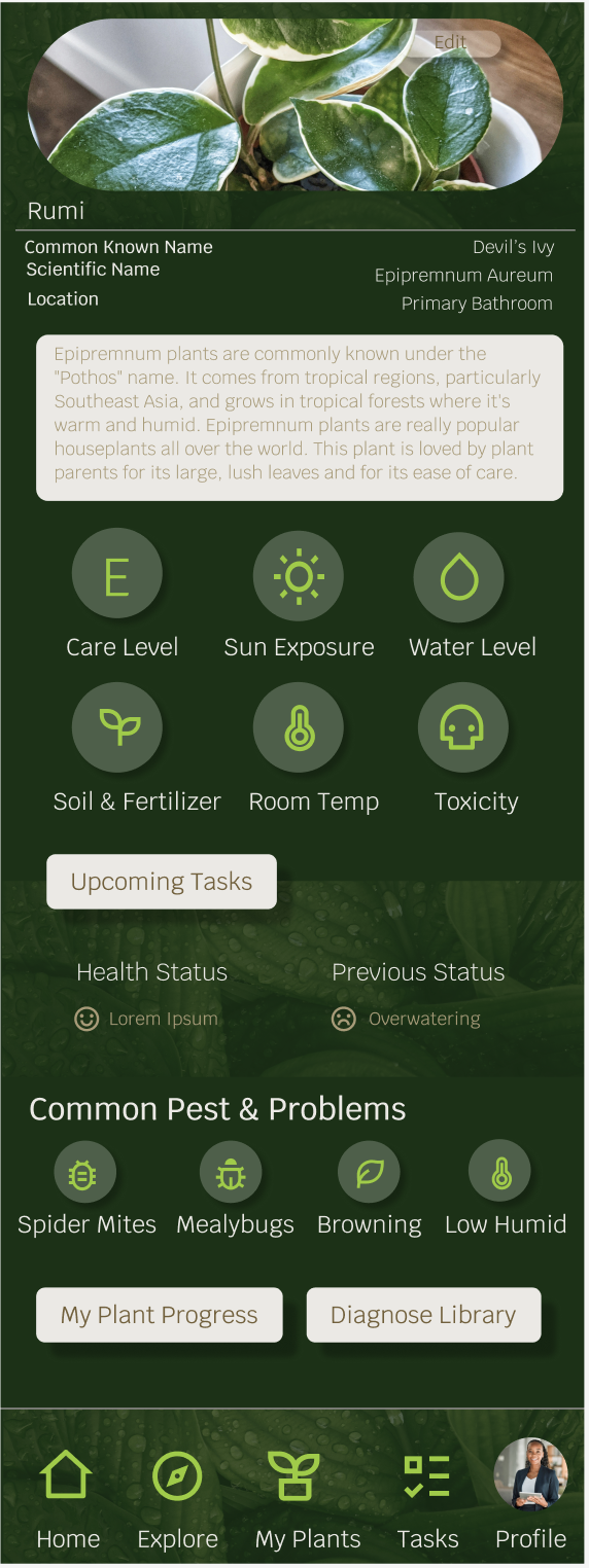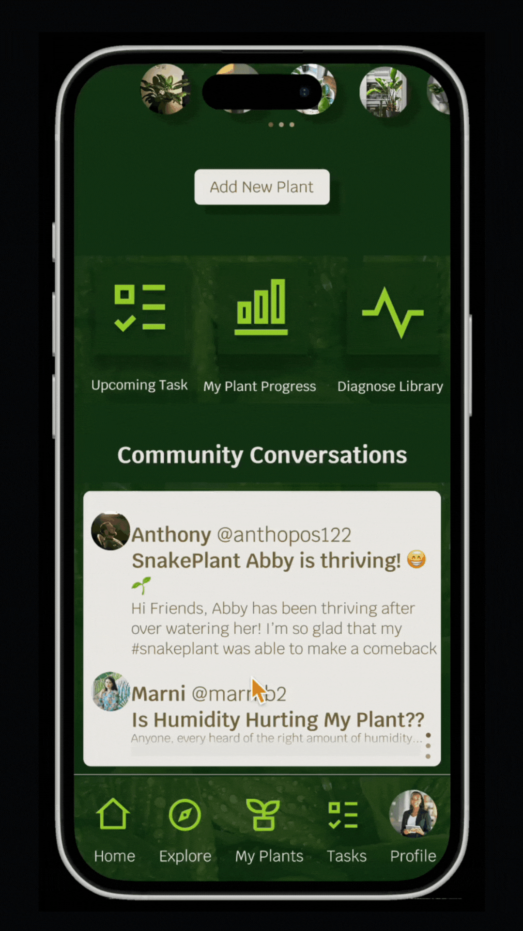 A mobile app that empowers plant parents of all levels to confidently care for their plants by providing accurate diagnoses of plant issues and offering tailored care recommendations for healthy and happy plants.
